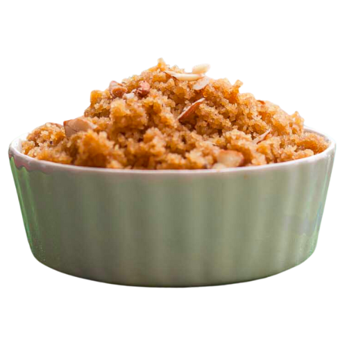 Made with Semolina, clarified butter, milk, sugar and dry fruits